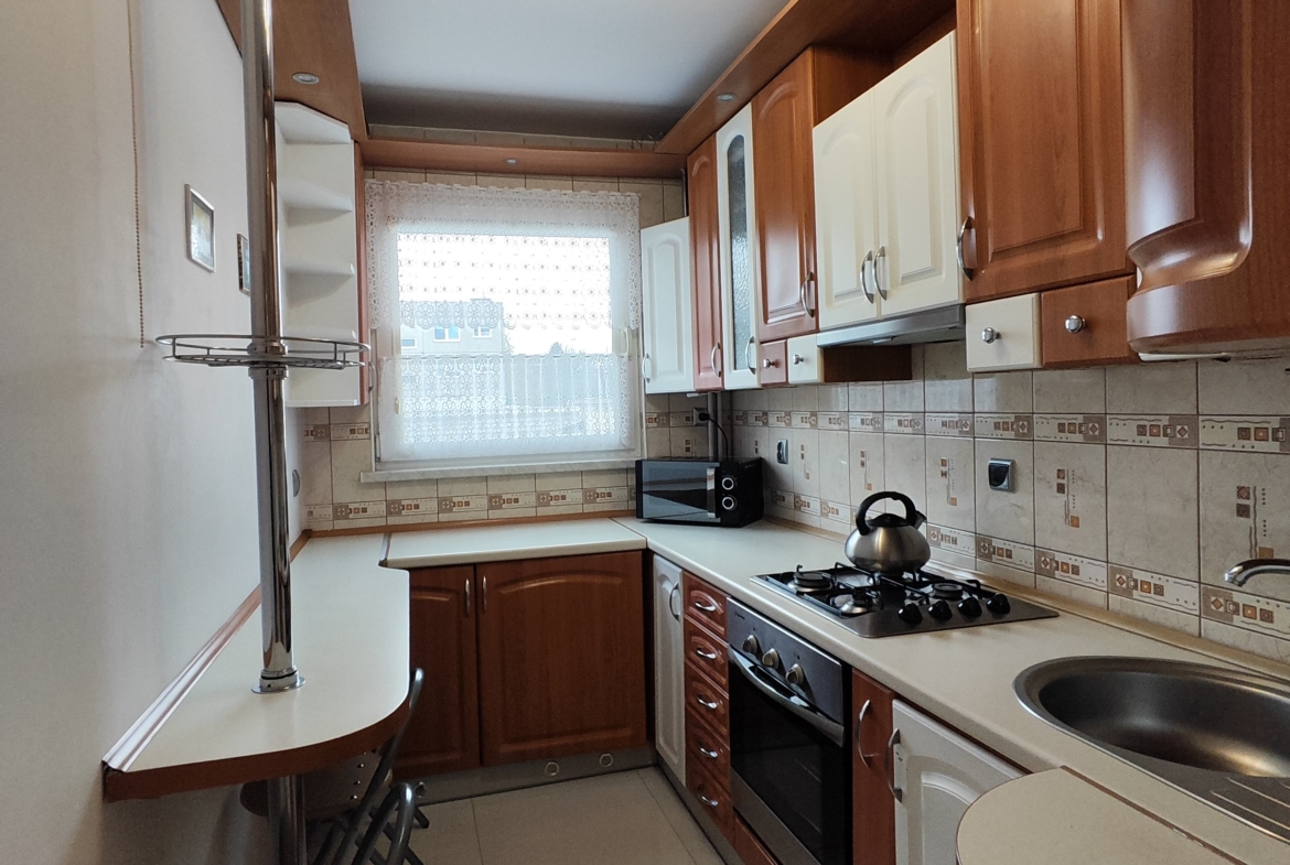 Standard: okna PCV z roletami zewnętrznymi, ściany gipsowane, malowane, glazura. Na podłogach panele oraz terakota. Mieszkanie dobrze utrzymane, nie wymagające dużych nakładów.
